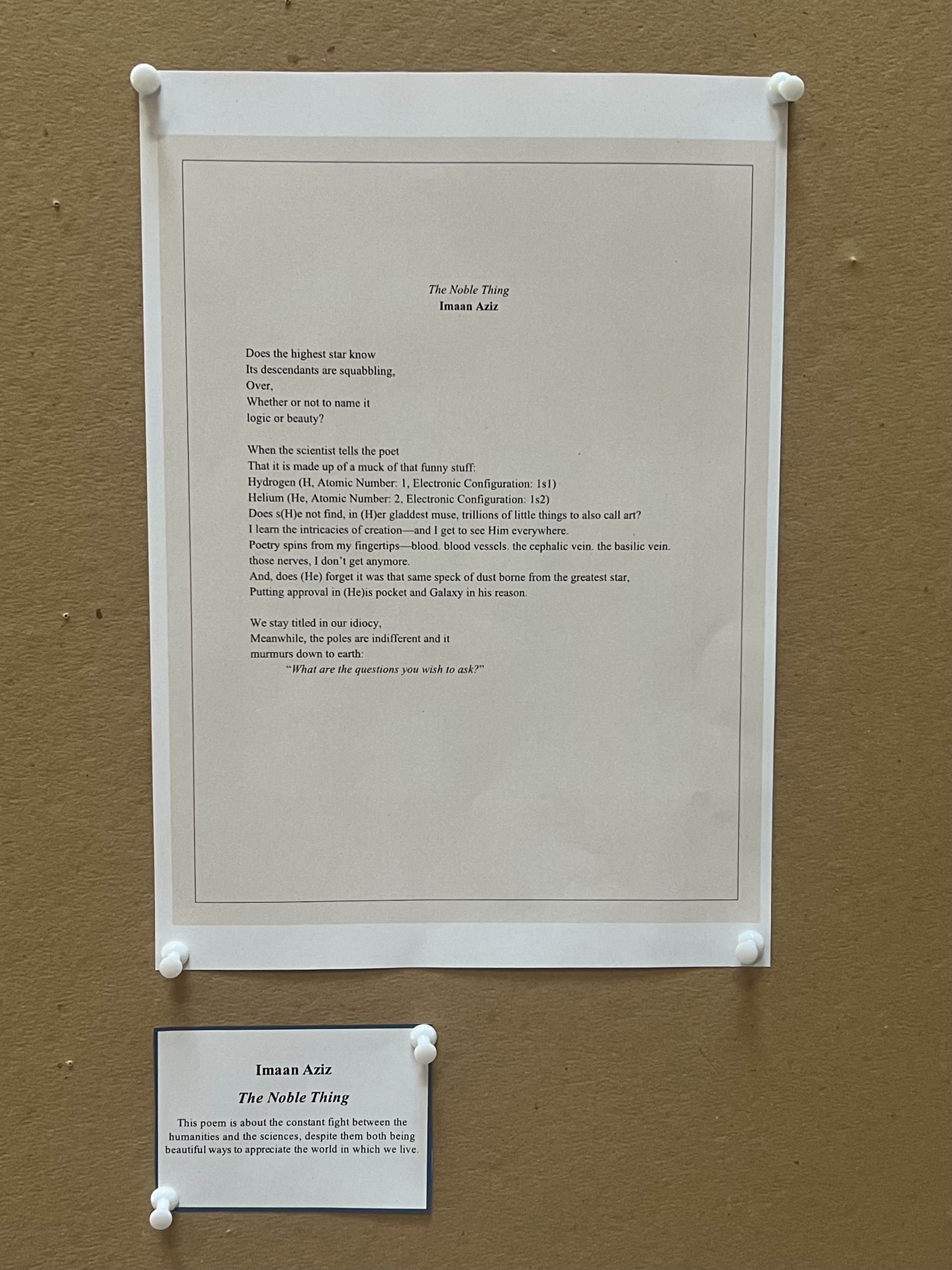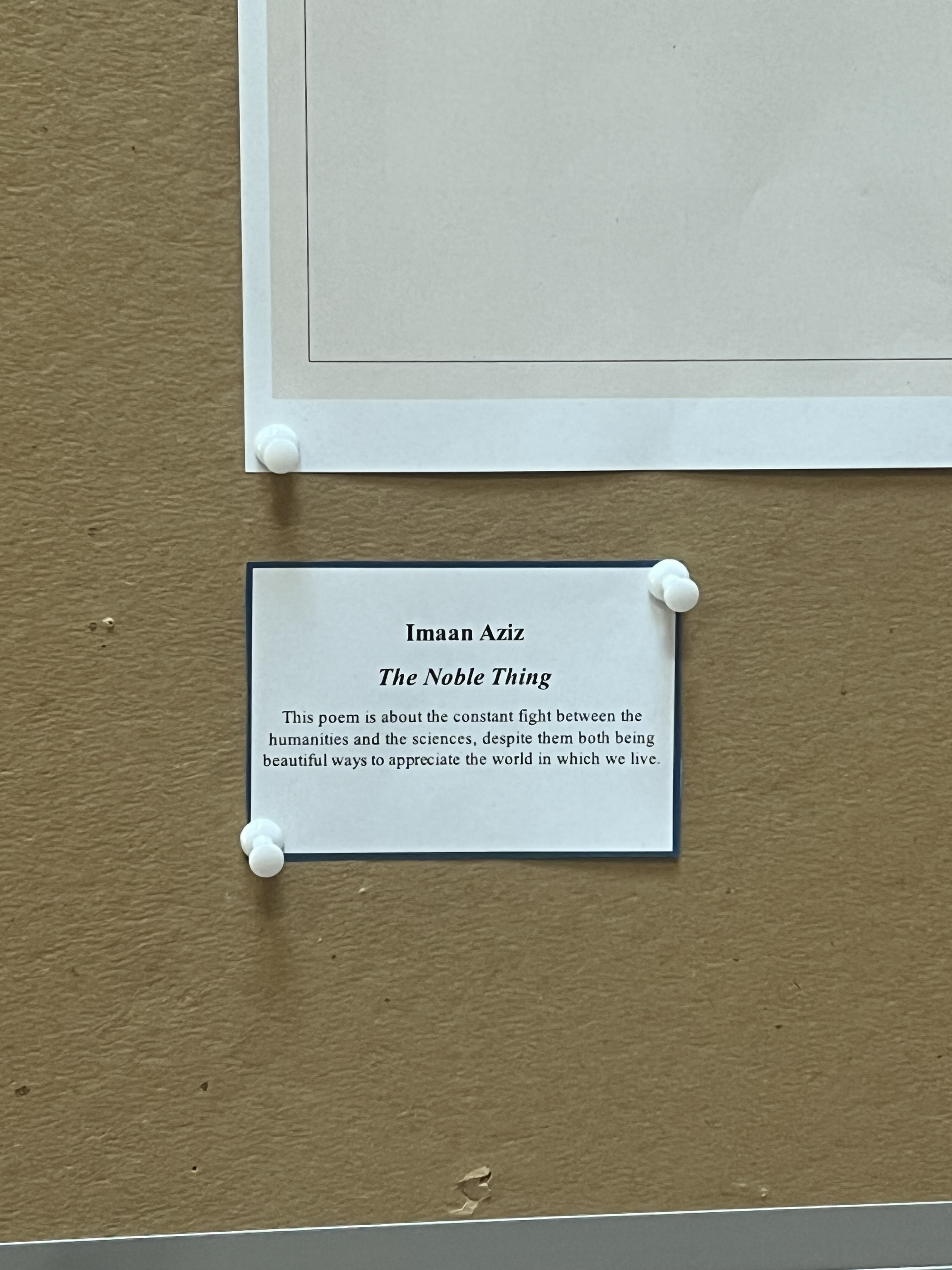 This year, I had the opportunity to submit one of my most recent poems: ‘The Noble Thing’ which is now on display in the exhibition.